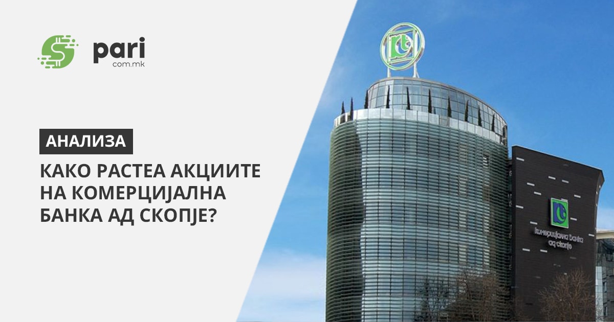 Растот на вредноста на акциите дури е особено изразен во пандемискиот период. Секако, во критичните денови откако лани на 12 март беше прогласна пандемијата и кога берзата се обои во црвено и Комерцијална банка имаше свои падови кај вредноста на акциите. Но, ако се анализира периодот од почетокот на 2020 година до вчера, односно за 1 години и 7 месеци, вредноста на акцијата пораснала за околу 50 проценти (од 6.559 денари на 3.1.2020 до 10.082 денари на 5.08.2021).