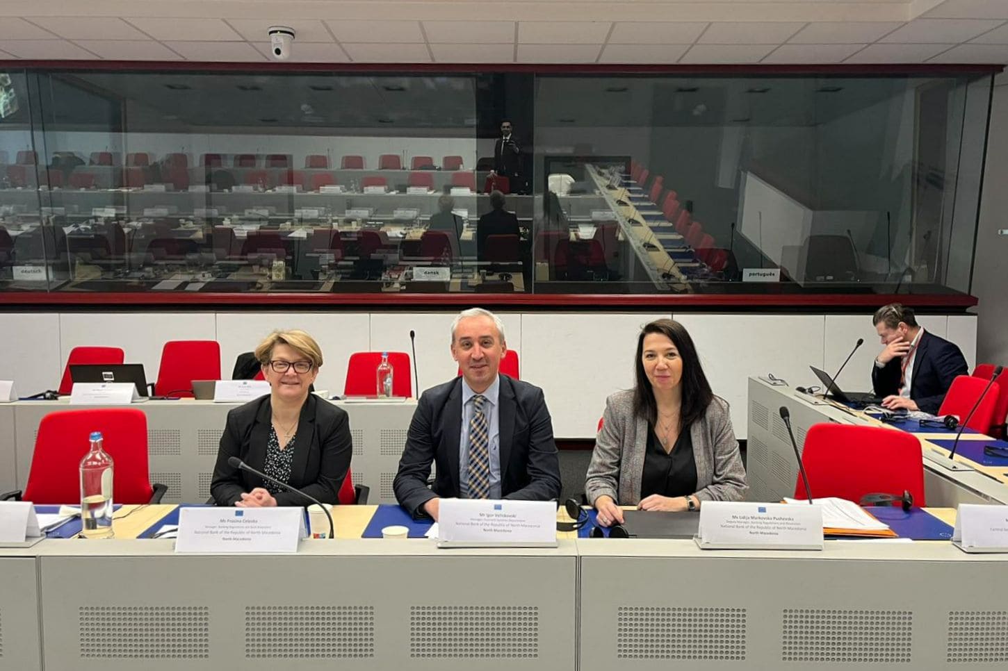 Народната банка е активно вклучена во активностите на работните групи за подготовка на преговарачките позиции за пристапување на нашата земја во Европската Унија, по одделни поглавја и области и во тековниот процес на билатералната фаза на аналитички преглед на законодавството (англ. Screening) со Европската Унија. Во рамките на Кластерот 2 – Внатрешен пазар, а конкретно за Поглавјето 9 – Финансиски услуги, свое излагање имаа Фросина Целеска и Лидија Пушевска-Марковска од Дирекцијата за банкарска регулатива и решавање банки во рамките на подрачјето „Банкарство и финансиски конгломерати“ и Игор Величковски од Дирекцијата за платни системи во однос на подрачјето „Платни системи и платежни услуги“.