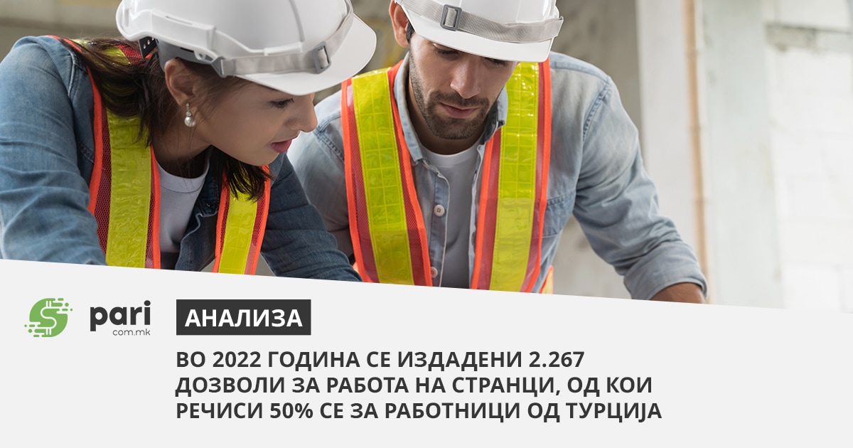 Во 2021 година издадени се вкупно 4.548 дозволи за работа на странци. Од почетокот на 2022 година издадени се 2.267 дозволи за работа на странци, а речиси 50% се за работници од Турција.