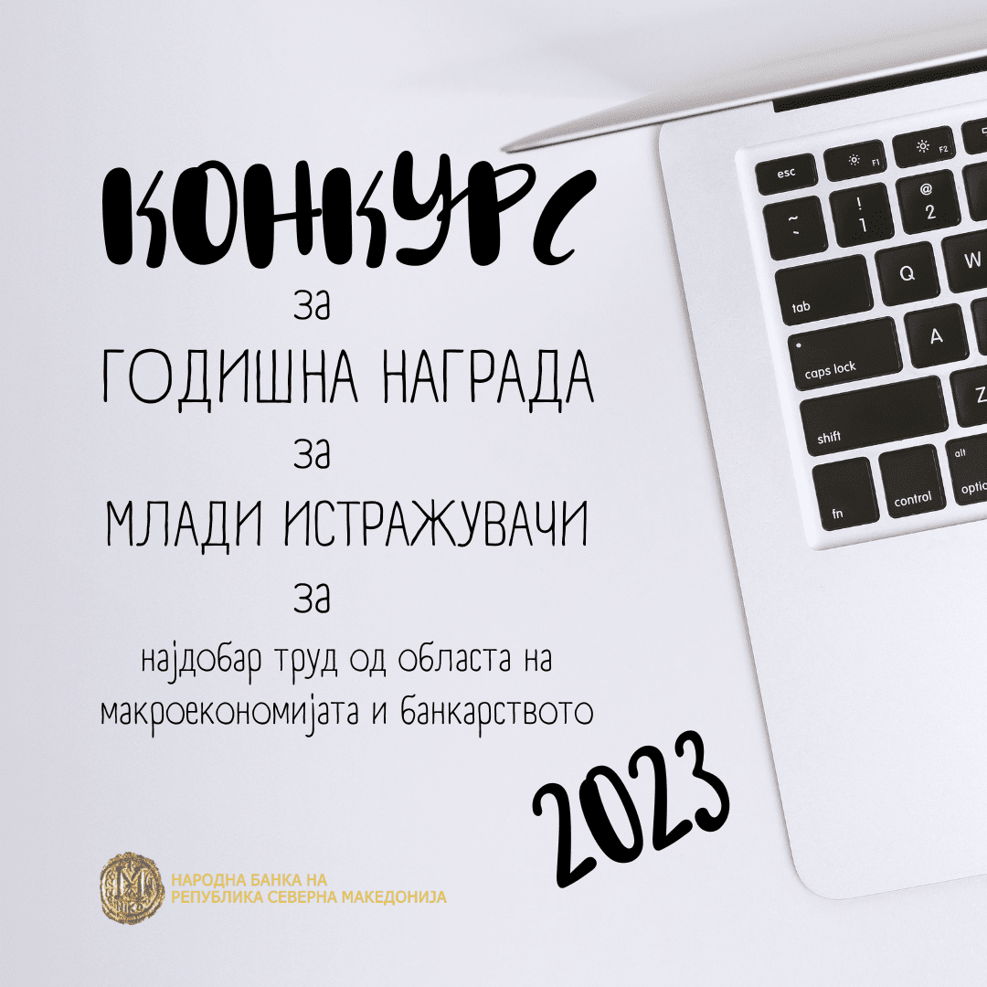 Крајниот рок за доставување на трудовите за Конкурсот за Годишната награда за најдобар труд од областа на макроекономијата и банкарството за 2023 година е 1 февруари 2023 година. Сите заинтересирани млади истражувачи можат да поднесат свој труд, согласно условите и критериумите на јавниот повик објавен во јули минатата година.