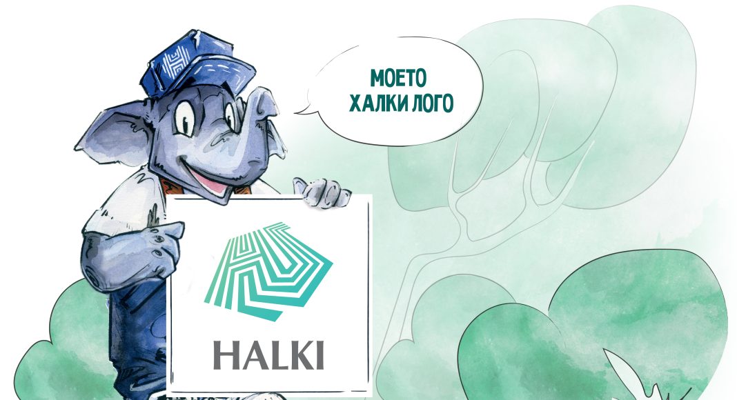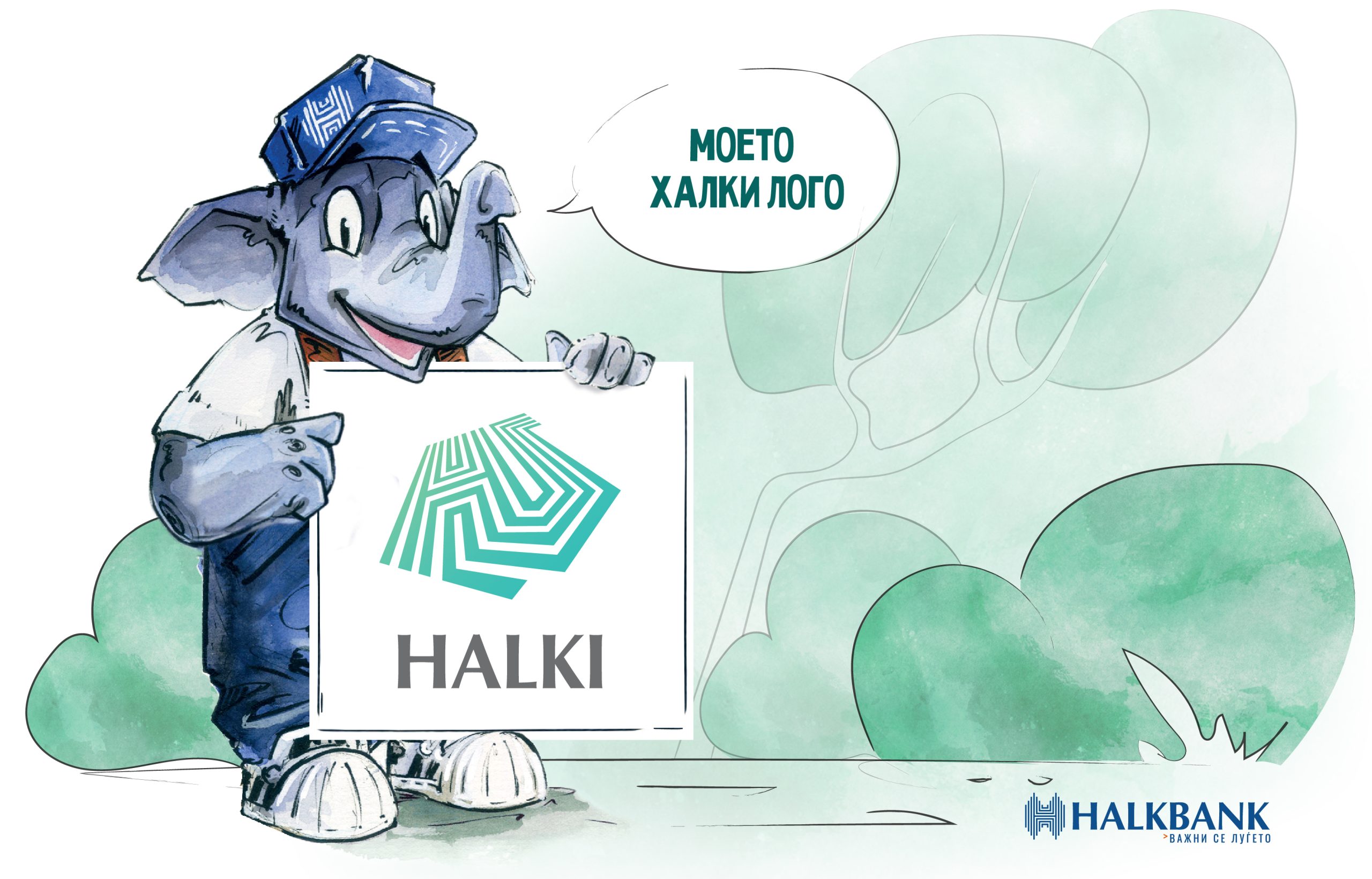 „Во креацијата на логото се употребени линиите од официјалното лого и брендингот на Халкбанк, како и официјалната типографија од логотипот. Палетата на бои ги содржи зелените тонови што асоцираат на Халки и неговата мисија – подигнувањето на свеста и грижата за животната средина, додека сивиот тон потсетува на бојата на кожата на слоновите“, објаснуваат од маркетинг агенцијата „Ефектива“ чиј тим се грижи за комплетниот развој на ликот на Халки.