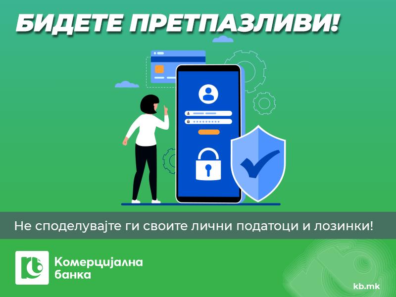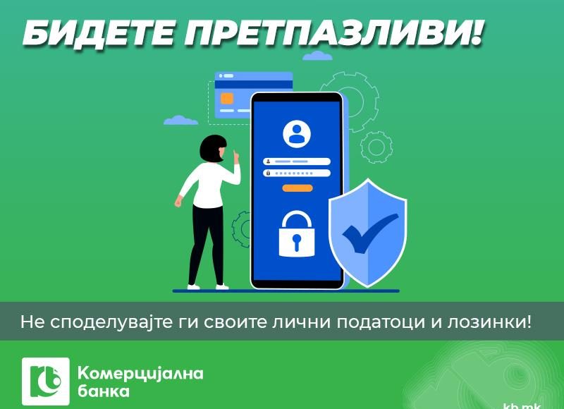 Еден од приоритетите на Комерцијална банката е грижата за твоите лични податоци. При користење на Интернет банка, внимателно прочитај ги сигурносните препораки.