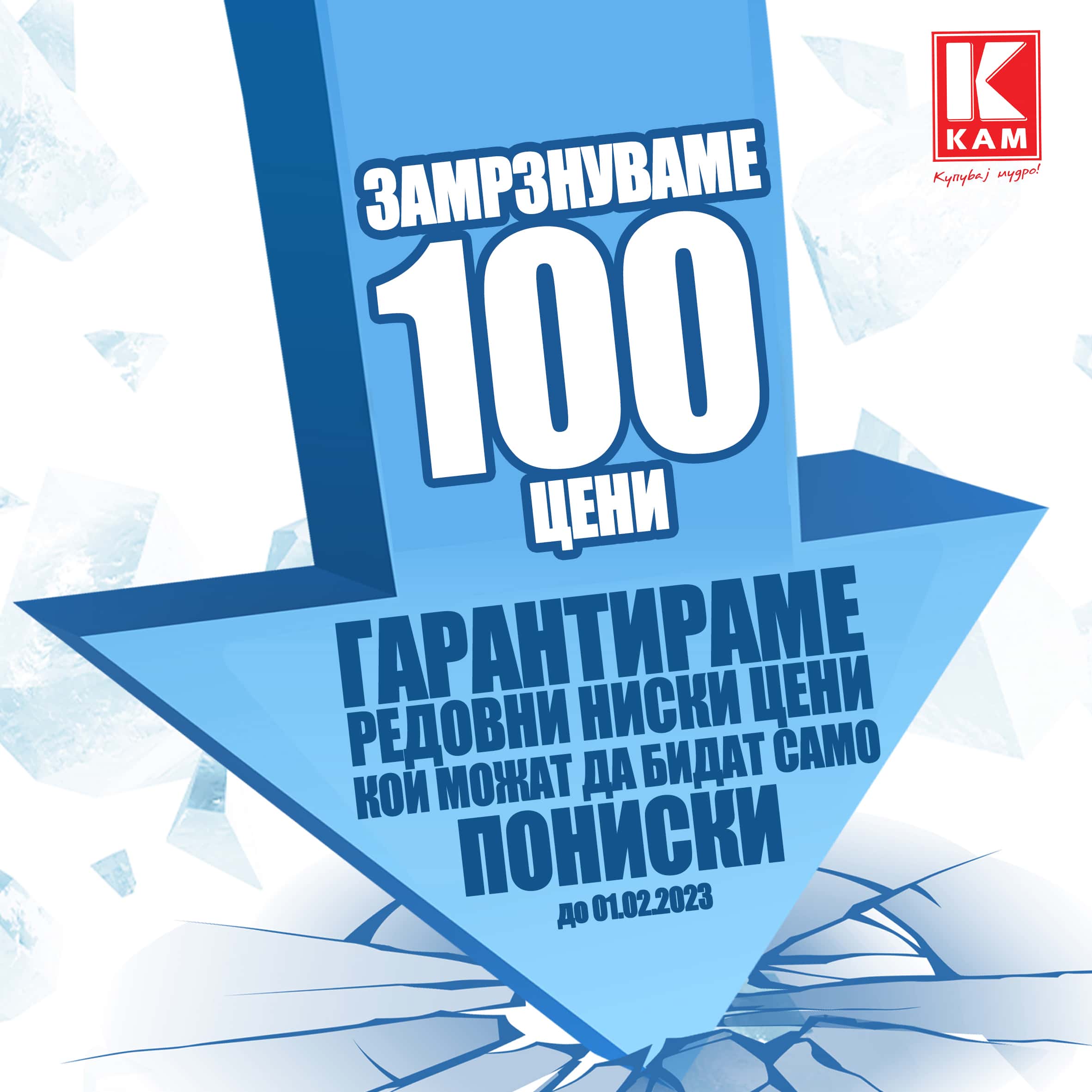 „КАМ маркет“ ги замрзнува редовните цени на 100 производи со цел да им излезе во пресрет на своите купувачи за престојните празници и да го ублажи шокот предизвикан од инфлацијата. Замрзнувањето ќе важи до 1 февруари 2023 година.