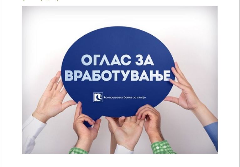 Напомена: Секоја апликација за вработување ќе биде третирана како строго доверлива. Според Законот за заштита на личните податоци, со самото доставување на Вашата апликација за работа за потребите на Банката согласни сте Вашите лични податоци да се обработуваат во процесот на селекција на кадри. Банката гарантира дека, освен за наведениот случај, Вашите лични податоци нема да бидат користени за ниту една друга цел, ниту, пак, достапни на трети лица. Банката обезбедува соодветно ниво на безбедност на личните податоци, согласно законската, подзаконската регулатива и интерните акти, вклучувајќи заштита од неовластена или незаконска обработка, како и заштита од нивно случајно губење, уништување или оштетување.