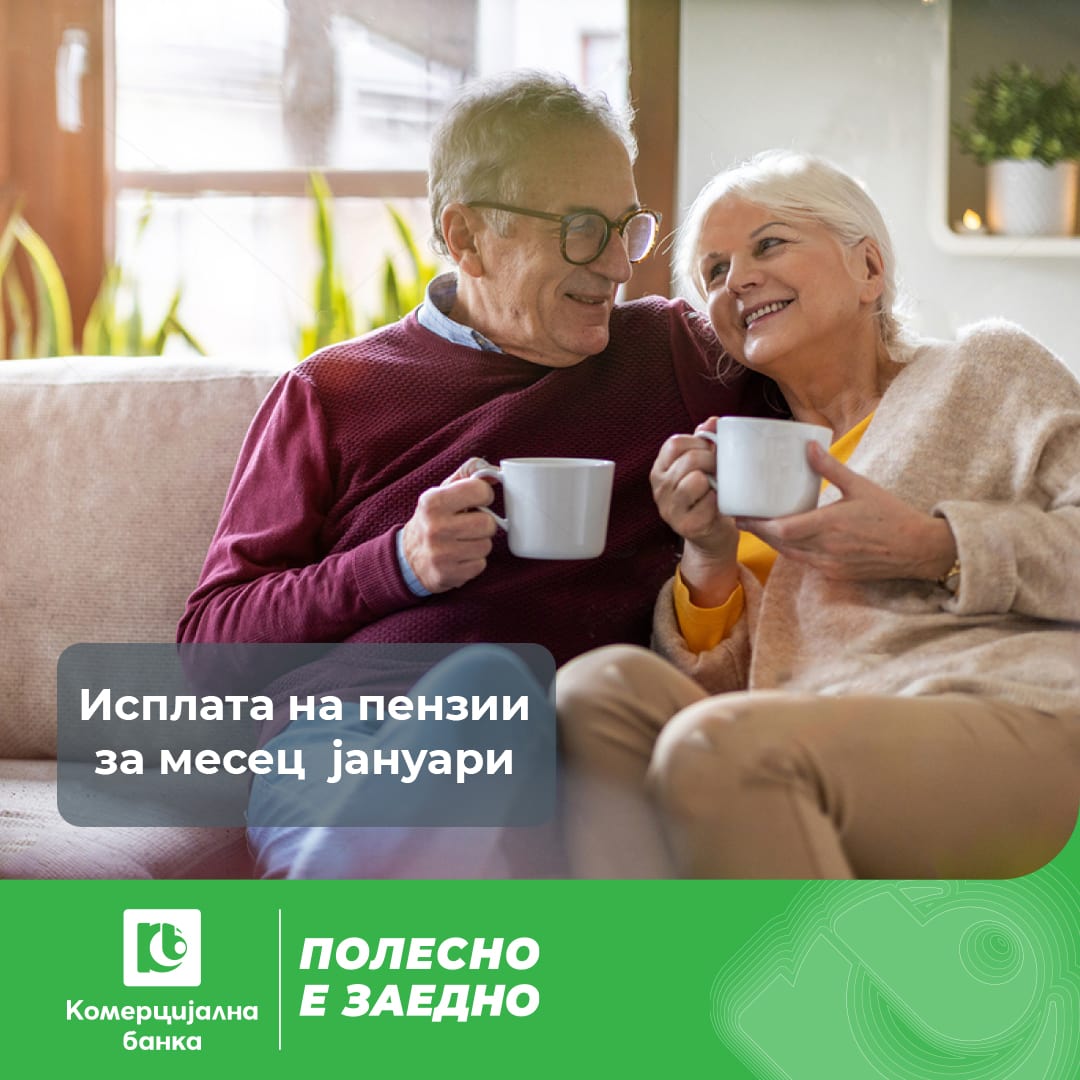 Комерцијална банка АД Скопје ќе започне со исплата на јануарските пензии од утре, 26.01.2022 година. Пензионерите кои имаат активна дебитна картичка со својата пензија ќе може да располагаат од утре и ќе може да ја подигнат на банкомат или да ја користат за безготовинско плаќање низ трговската мрежа.
