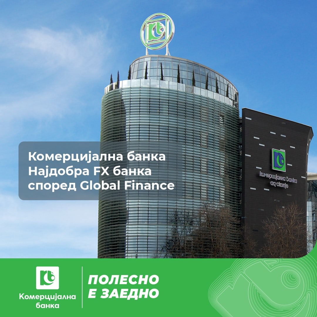 Комерцијална банка по 13. пат е прогласена за „Најдобра FX банка во Македонија“ од угледниот меѓународен магазин „Global Finance“ затоа што на клиентите им обезбедува ефикасен начин и алатки за справување со волатилноста на валутите.