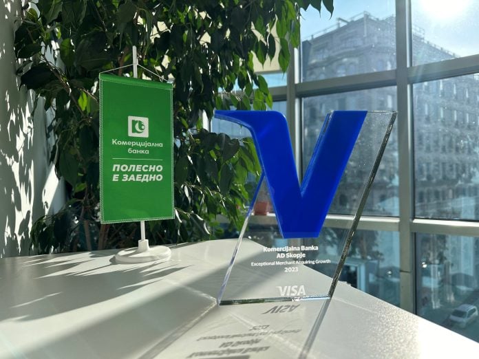 Комерцијална банка е добитник на признанието од Visa за остварен најголем раст во прифаќањето картички во трговијата (Exceptional Merchant Acquiring Growth) во земјава во 2023 година.