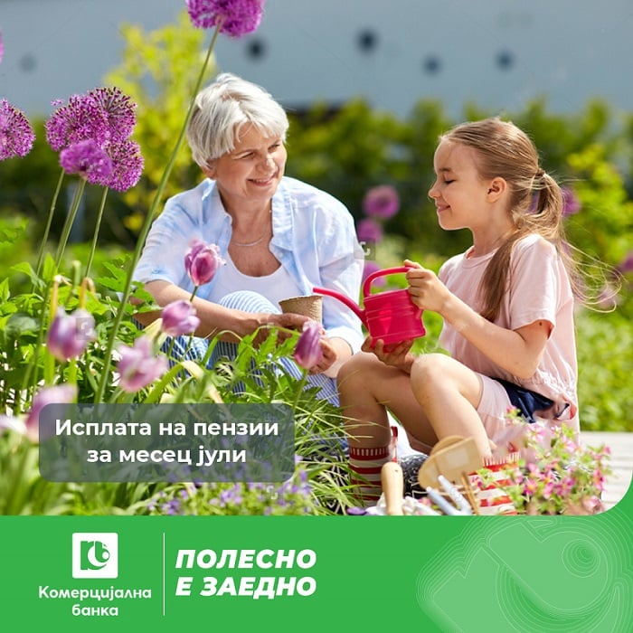 Комерцијална банка АД Скопје ќе започне со исплата на јулските пензии од среда, 27.07.2022 година. Пензионерите кои имаат активна дебитна картичка со својата пензија ќе може да располагаат од среда и ќе може да ја подигнат на банкомат или да ја користат за безготовинско плаќање низ трговската мрежа.