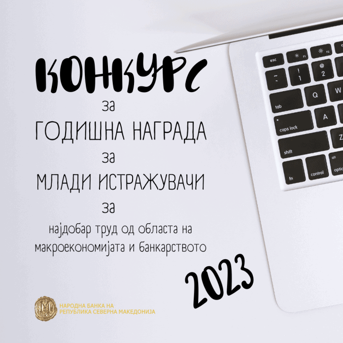 Народната банка го објави конкурсот за Годишната награда за млади истражувачи за најдобар труд од областа на макроекономијата и банкарството за 2023 година. На овој начин, Народната банка има за цел да ја поттикне научно-истражувачката мисла и да придонесе во областа на макроекономијата и банкарството, како и да ги поддржи младите истражувачи преку можноста да ја презентираат својата работа.