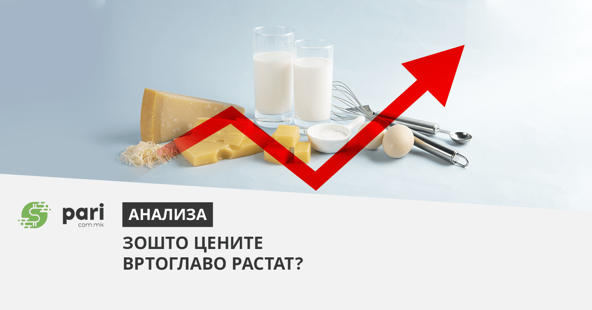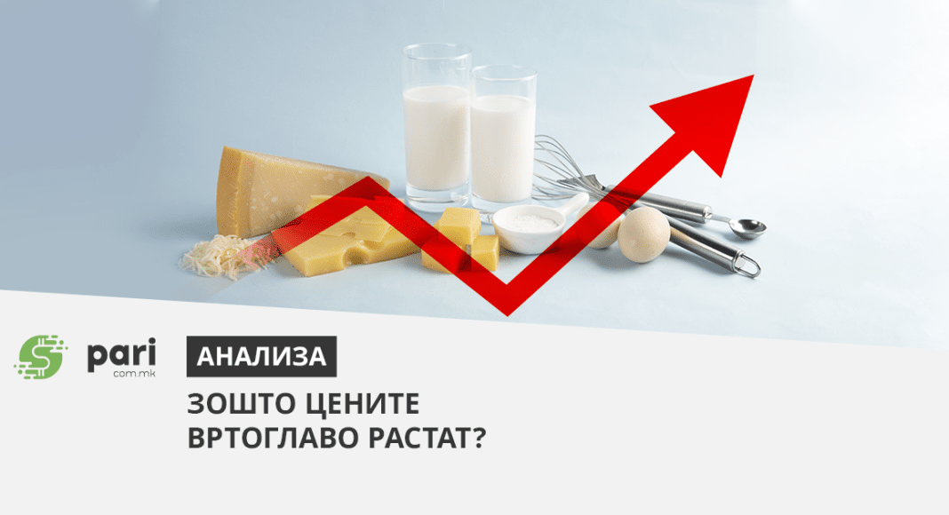 Последниве недели особено станаа актуелни новите поскапувања на храната, а меѓу нив и на млечните проиводи. Цените постојано се корегираат, а во моментов, додека се пишуваат овие редови ги користиме податоците од онлајн трговијата Пакет.мк. Цената на трајното млеко „Бимилк“ со масленост 3,2% е 69 денари за литар, 400 грама кисело млеко „Бучен Козјак“ е 35 денари, павлака 700 грама „Бимилк“ е 119 денари, кравјото сирење на „Бучен Козјак“ е 364 денари за еден килограм, мешано сирење на „Кораб Трница“ е 457 денари за килограм, кравји кашкавал на „Идеал Шипка“ е 572 денари…