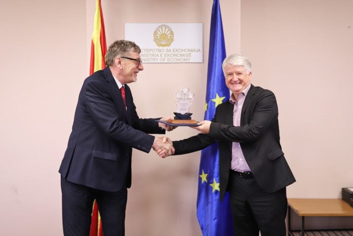 Наградата и признанието му беа врачени денеска на Претседателот на Управниот одбор на НЛБ Банка Скопје, Бранко Грегановиќ на свечена церемонија во организација на Министерството за економија на Република Северна Македонија и Координативното тело за општествена одговорност на претпријатијата.