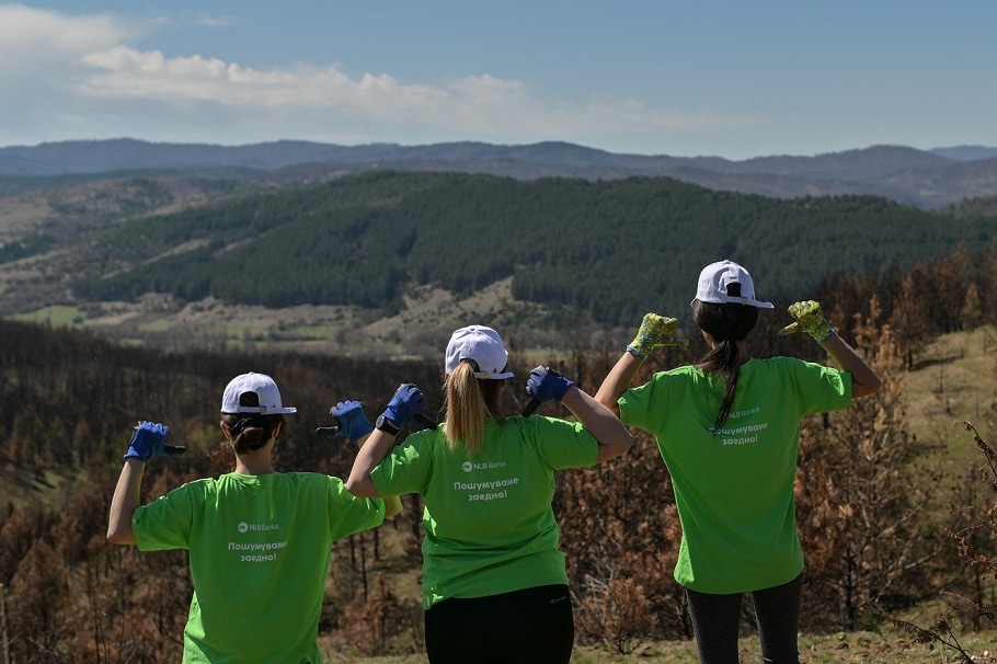 Под мотото „Пошумуваме заедно“, НЛБ Банка реализираше голема волонтерска акција за пошумување на малешевскиот регион, кој беше еден од најпогодените во големите шумски пожари минатото лето. Акцијата беше спроведена во соработка со ЈП „Национални шуми“ (Малешевија) и Општина Берово кои активно се вклучија во организацијата и засадувањето на 3.700-те садници црн бор и јасен, карактеристични за ова поднебје.