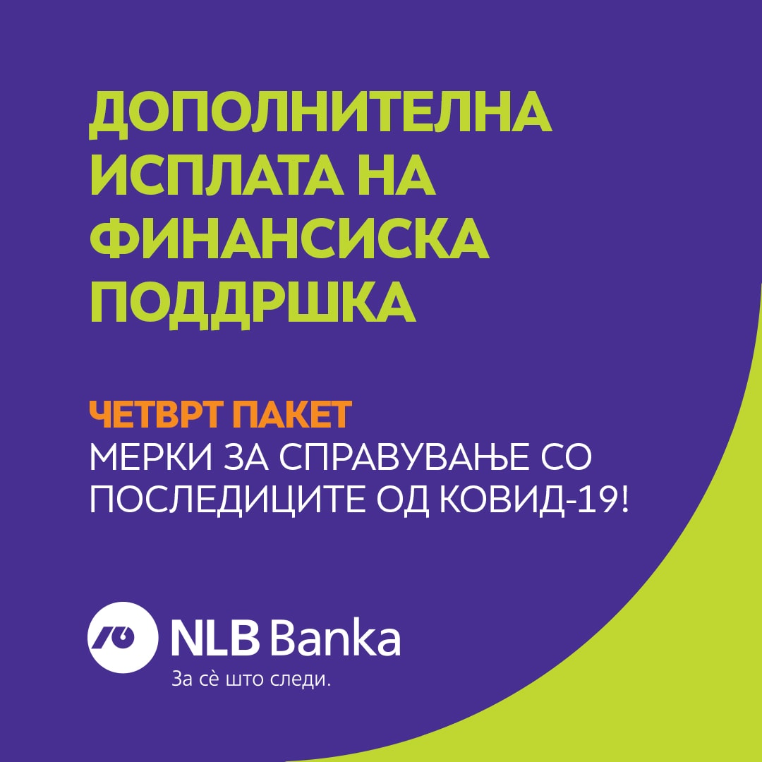 Согласно  иницијативата на Владата на РСМ во рамки на четвртиот пакет мерки за справување со COVID- 19 кризата, во НЛБ Банка е извршена дополнитела исплата на финансиската поддршка на граѓаните кои биле распределени во НЛБ Банка, а на кои не им била исплатена поддршката во декември 2020 година.
