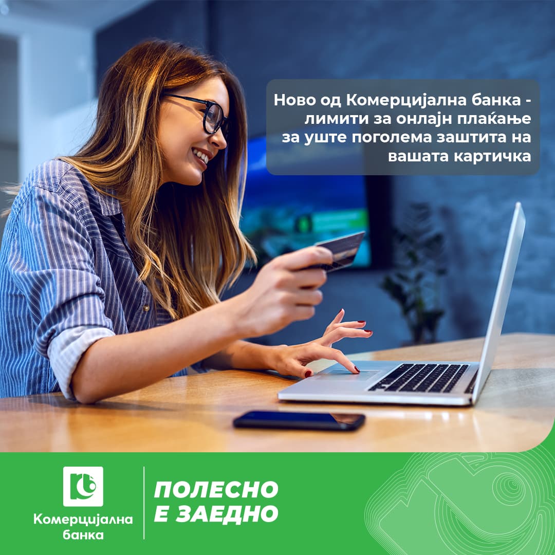 За максимално задоволство и сигурност при плаќање онлајн со картичка, Комерцијална банка им овозможи на своите клиенти лимити за онлајн трансакции. Со оваа корисна и практична услуга клиентите добиваат уште поголема безбедност и заштита од злоупотреба на нивната картичка.