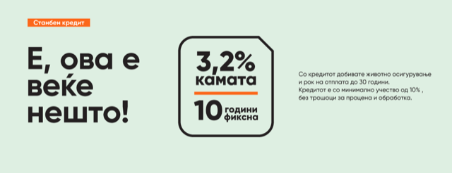 Новиот производ наменет за физички лица кои се во редовен работен однос и пензионери, може да се користи за купување стан, куќа или деловен простор, како и за рефинансирање изложеност во други банки по основ на станбен кредит. Временскиот рок на отплата е до 30 години и за новиот производ е ниска стапката на вкупни трошоци, а дополнително нема трошоци за проценка и за одобрување, како ни надомест за ликвидација на кредитот од сопствени средства. Кредитот е со намалено учество од 10%, а за овој производ банката нуди и големи олеснувања во обезбедувањето.