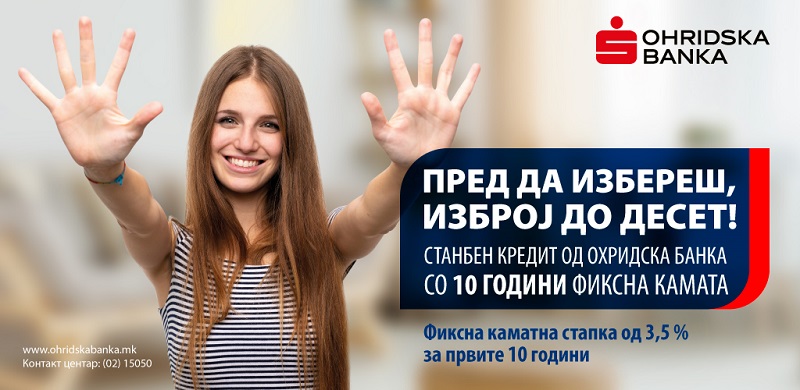 Повеќе информации за станбениот кредит со 10 години фиксна каматна стапка, како и за останатите станбени кредити на Охридска банка може да прочитате на www.ohridskabanka.mk.