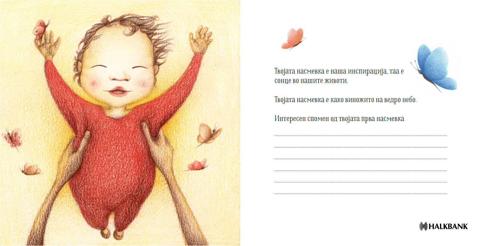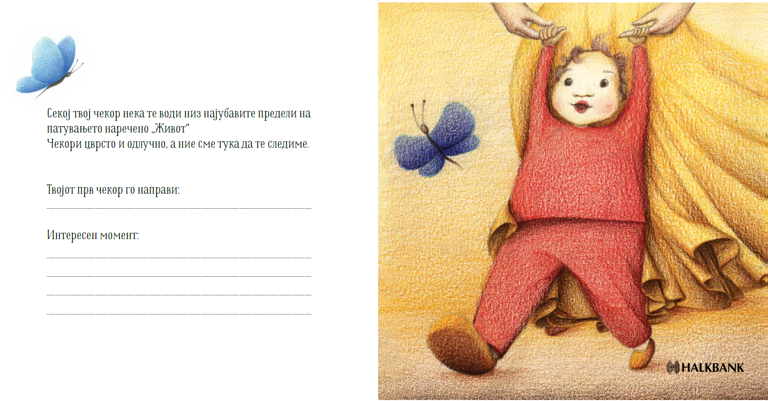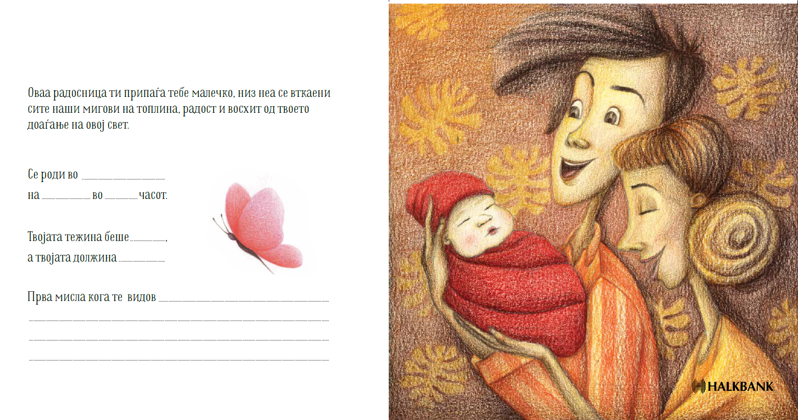На мајките кои што ќе го донесат на свет своето малечко во некоја од овие родилишта, радосниците со уникатна содржина и илустрации, наменски креирани за да ги овековечат сите први нешта од првата година на детето, ќе им ги разбудат најубавите емоции, кога и да погледнат во книгата вредна богатство. За децата за чие раѓање се наменети пак, ќе бидат можност секогаш кога ќе посакаат да се навратат на најраните денови од својот живот.
