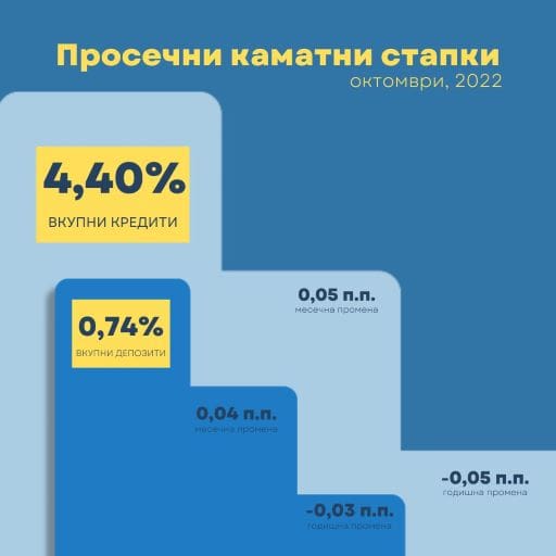 Месечно зголемување на просечната каматна стапка на вкупните кредити, при што во октомври таа изнесува 4,40%.