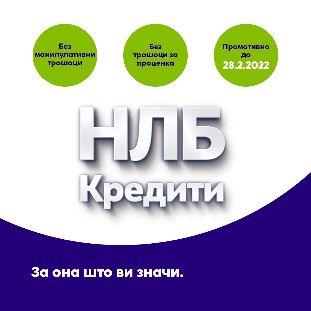 Повеќе информации за кредитните производи на НЛБ Банка и за промотивната понуда се достапни на веб-страницата на Банката: www.nlb.mk или на Контакт центарот на телефон: 02/15 600