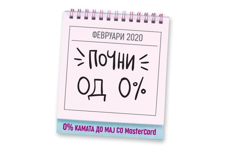 Аплицирајте за нова MasterCard кредитна картичка до 31.03.2020 година и добијте годишна каматна стапка од 0% до крајот на април 2020 година.