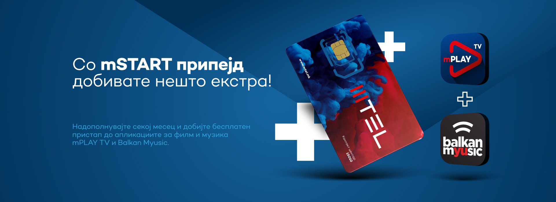 Со mSTART 14 добивате бесплатен пристап до овие апликации со редовно дополнување кредит од најмалку 299 денари месечно. Со mSTART 20, првиот месец добивате бесплатен пристап до апликациите, а од следниот месец со редовно дополнување кредит од најмалку 299 денари месечно. Двете апликации исто така ги добивате со претплатнички договор за тарифниот модел mCONNECT L и за пакетот mBOX Trio Max
