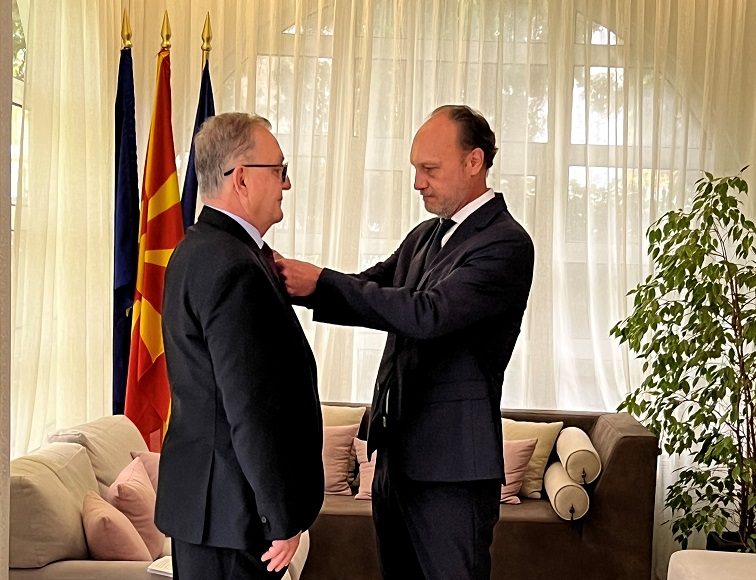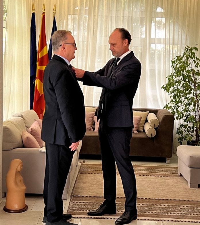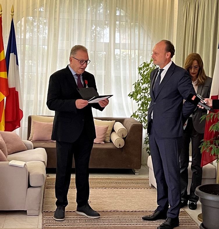 Во името на претседателот на Република Франција, Емануел Макрон, највисокиот француски орден на господинот Јаневски му беше предаден од страна на амбасадорот на француската република во Скопје, Сирил Бомгартнер.