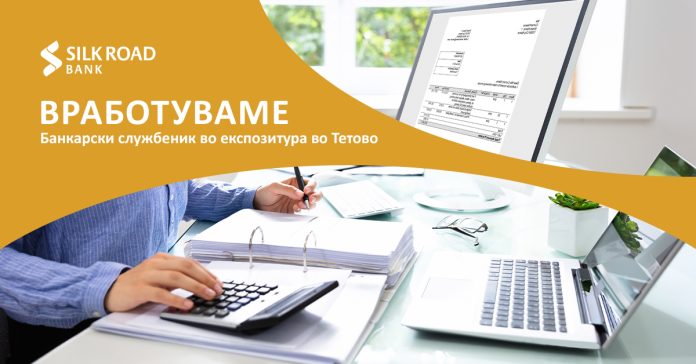 СИЛК РОУД БАНКА АД СКОПЈЕ нуди можност за работа во динамична, квалитетна и пријатна работна средина, со можност за личен развој и професионален напредок.