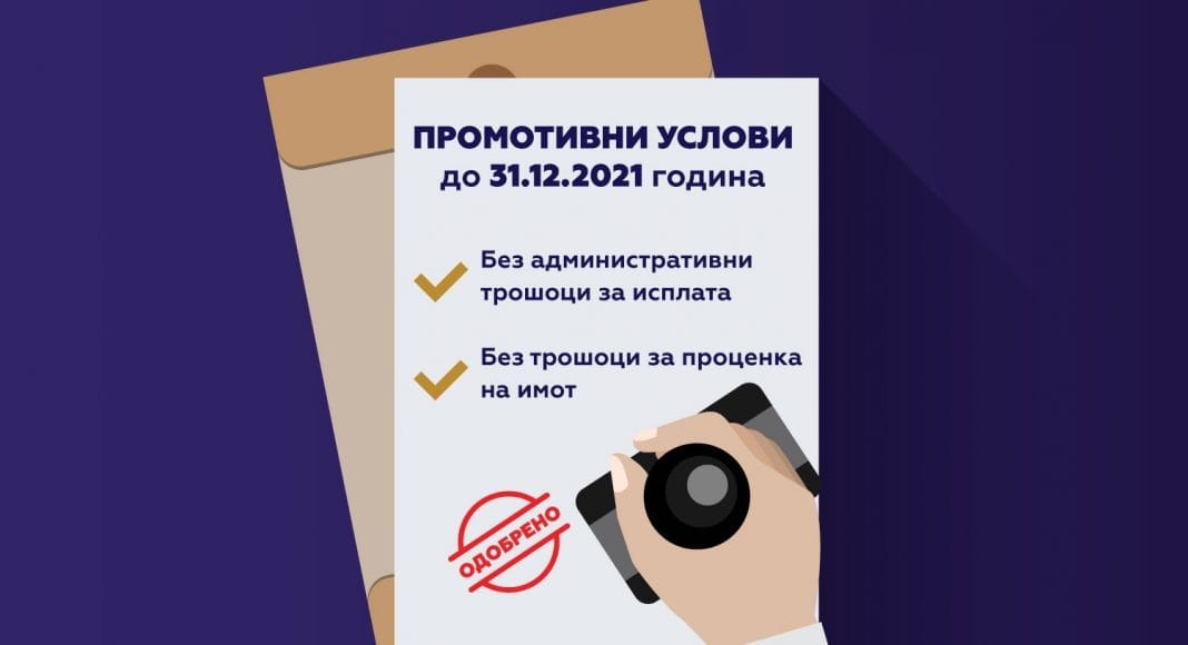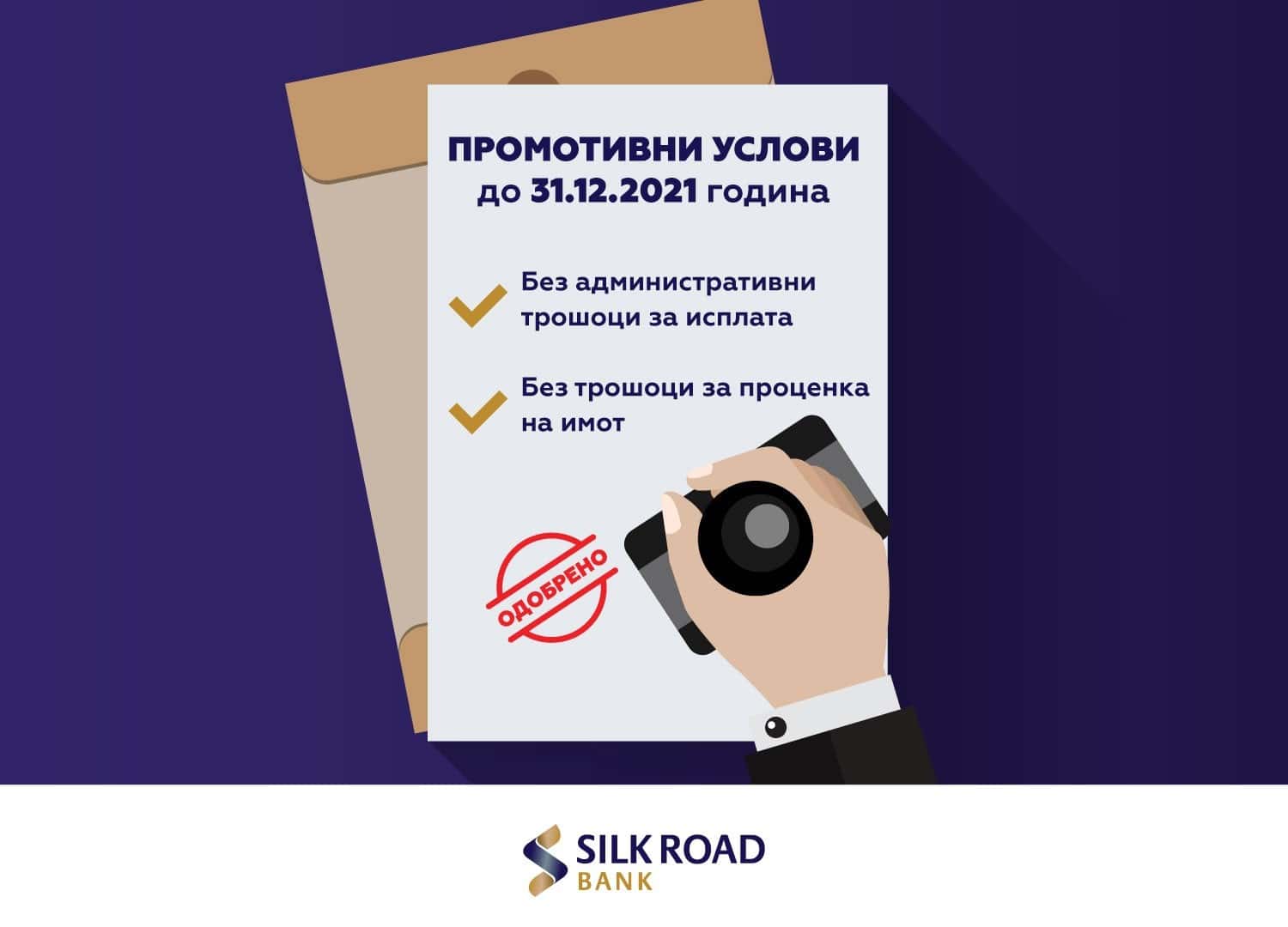 Силк Роуд Банка АД Скопје ги продолжи промотивните услови за кредитните производи за физички лица. Сите кредити на Банката за физички лица до 31.12.2021 година се без административни трошоци за исплата и без трошоци за проценка на имот за хипотекарните и станбените кредити.
