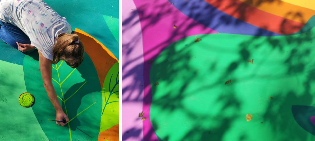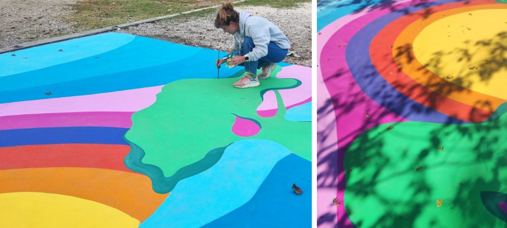 Просторот што се наоѓа непосредно до главниот влез е облагороден со голем поден мурал со пејсажни мотиви, насликан во широка палета светли тонови. Површината изобилува со насликани растенија, планини, дрвја и поттикнува на игра, дружење, фотографирање и забава. Всушност, Халкбанк АД Скопје, како голем пријател на Зоолошката, обезбеди интересни визуелни решенија, сцена на отворено, занимливости и креативи на кои доминира ликот на слончето Халки, со што омилената скопска дестинација, доби сосема нов изглед.