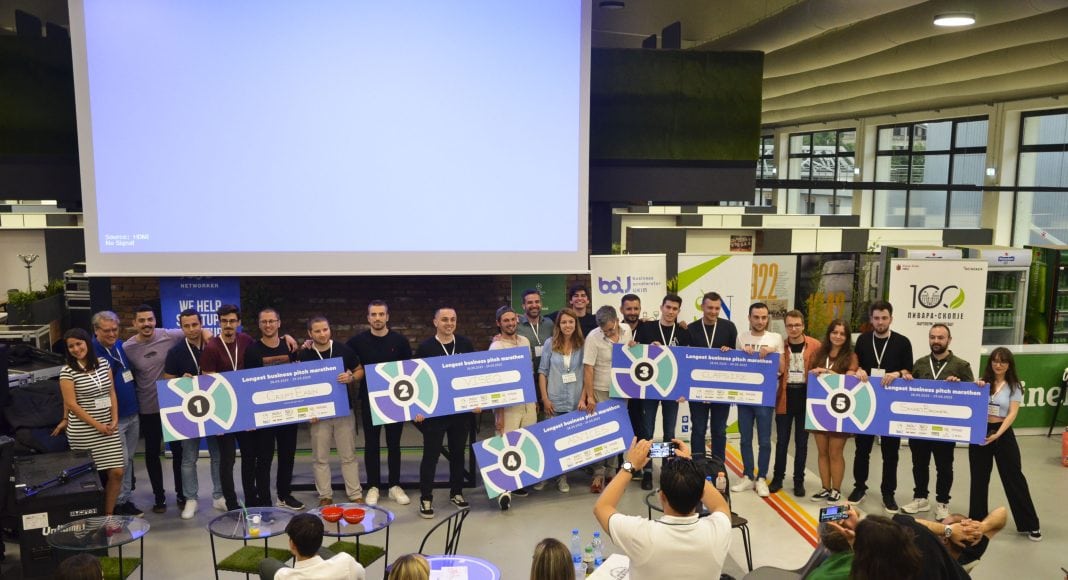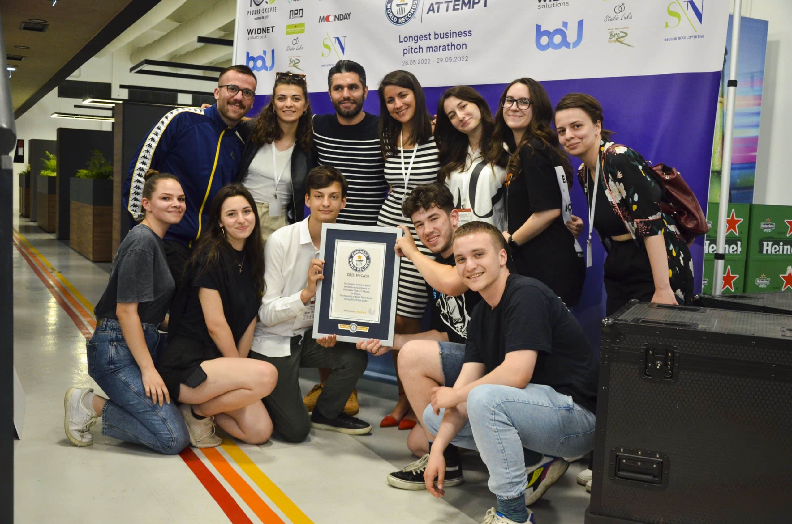 Со голема радост споделуваме дека по 30 непрекинати часа активна работа и презентација на 90 бизнис идеи, кои се натпреваруваа за добивање инвестиции во износ од 25.000 евра, Гинисовиот рекорд е срушен викендов во Скопје.