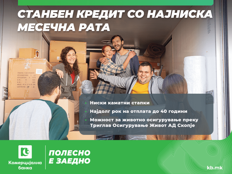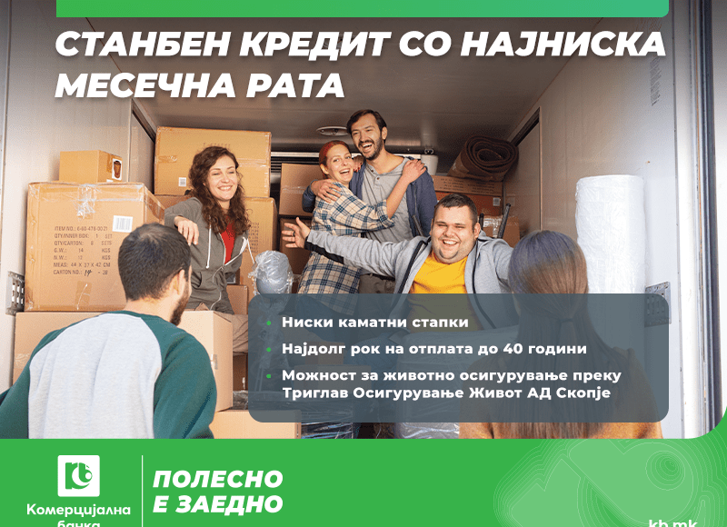 Станбен кредит со најниска месечна рата ви нуди Комерцијална банка