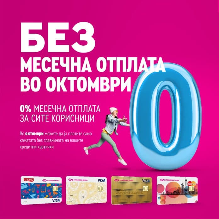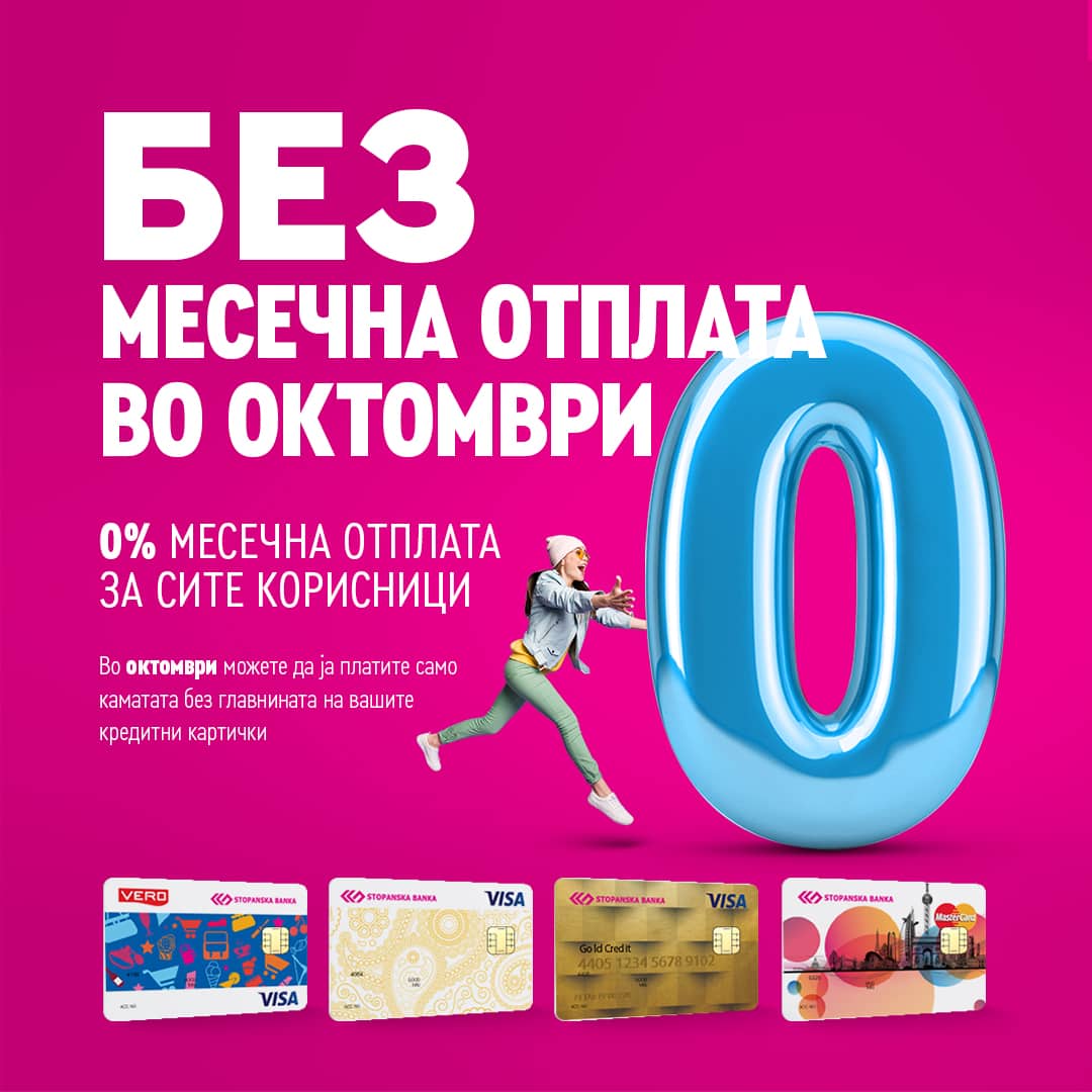 Промотивно во месец октомври – платете ја само каматата без главнината на вашите кредитни картички, за сите корисници на кредитни картички на Стопанска банка АД Скопје.