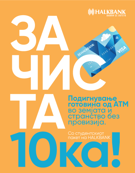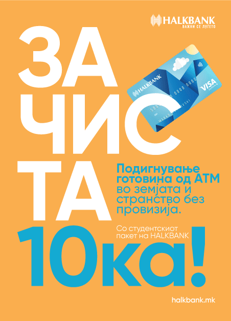 Како банка која постојано води грижа за потребите и барањата на различните категории граѓани, Халкбанк креираше нов производ наречен „За чиста10-ка“, овојпат наменет за студенти. Станува збор за специјален пакет услуги кој на идните академски граѓани им нуди низа поволности и бенефиции. Производот е наменет за млади на возраст од 18 до 24 години, а секој студент може да аплицира онлајн или во најблиската филијала на банката. Сè што е потребно е да се поседува важечки индекс и лична карта.