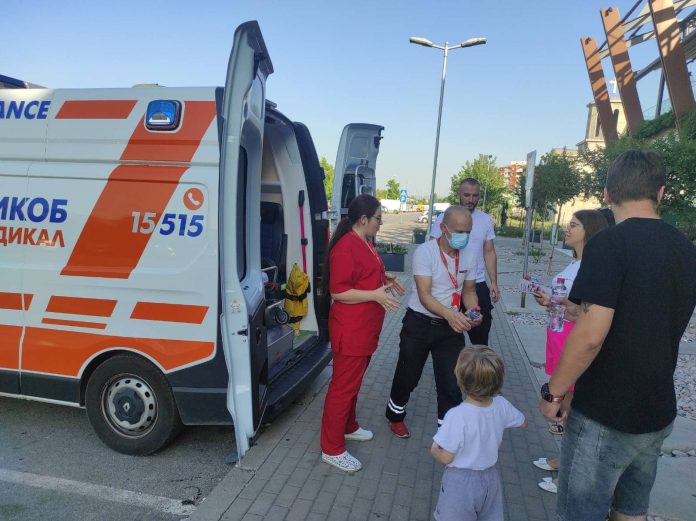 Мобилниот медицински тим на ПЗУ Никоб Медикал, изминатиов викенд на локација во ТЦ Лиса – Тинех во општина Аеродром поделија освежителни пијалоци и ги советуваа граѓаните како најдобро да се заштитат од високите температури, со посебен акцент во заштита на ризичните категории на граѓани, старите лица, лицата со хронични заболувања, бремените жени и малите деца. Препораките се да се избегнува излегување на отворено од 11:00 до 18:00 часот, да се носи лесна и светла облека, капа и заштитни очила за сонце, конзумирање на лесна храна и зеленчук и овошје, внес на течности, избегнување на алкохол и мрсна храна, конзумирање на термичко обработена храна редовно земање на соодветната терапија пропишана од доктор.