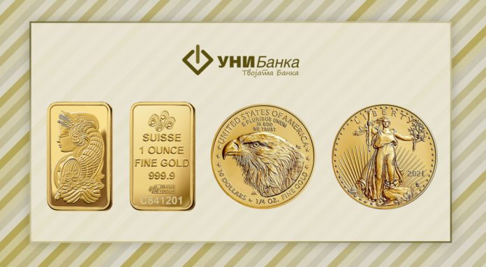 УНИБанка АД Скопје е првата Банка во земјата која увезува и тргува со инвестицискo злато што вклучува златни плочки со чистота од 999.9/1000 (24 карати) и златни монети со чистота од 900/1000 (22 карати) и со поголема чистота , согласно стандардот “London Good Delivery” и се тргуваат на London Bullion Market Association (LBMA). Банката набавува злато од странски водечки рафинерии за благородни метали од Швајцарија и Германија и реномирани светски познати дилери на злато.