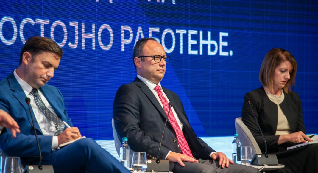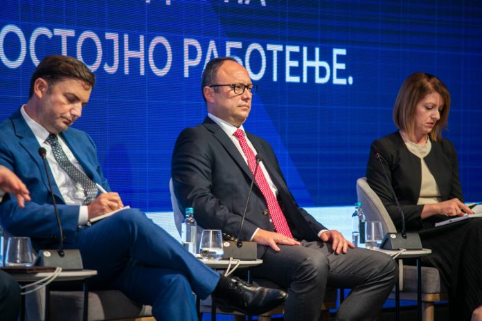 „Согласно Фискалната стратегија, предвидена е етапната фискална консолидација за намалување на буџетскиот дефицит како % во БДП и тоа од 4,2% во 2023 година до 2,8% во 2027 година, како и подобрена структура на јавните финансии со значајно учество на капиталните расходи од 4% во БДП на годишно ниво. Во контекст на постепената фискална консолидација е и претпазливото и стратешко менаџирање на јавниот долг. Во оваа насока ќе го споменам и инструментот ПЛЛ за кој Мисијата на ММФ минатата недела ни даде зелено светло, но и излегувањето на германскиот пазар со обврзница по значително поповолни услови од оние на глобалниот пазар на капитал“, истакна Николоски, притоа нагласувајќи дека мора да се имаат предвид и предизвиците со кои се соочуваме, како енергетската и ценовната криза, а кои бараат и соодветен фискален одговор.