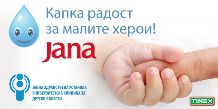 Од секој купен производ негазирана природна минерална вода Јана дел од средствата ќе бидат издвоени за Детската Клиника во Скопје.