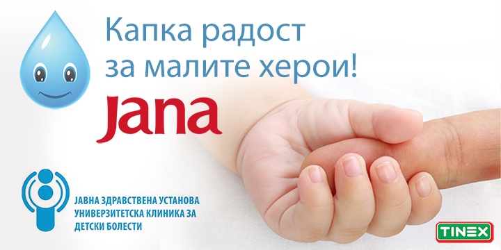 Со купување освежителни пијалоци од асортиманот на брендот Јана во период од 01 Август до 31 Октомври 2021 год. во сите маркети на Тинекс и Космо помагате да се соберат средства за Детската Клиника во Скопје.