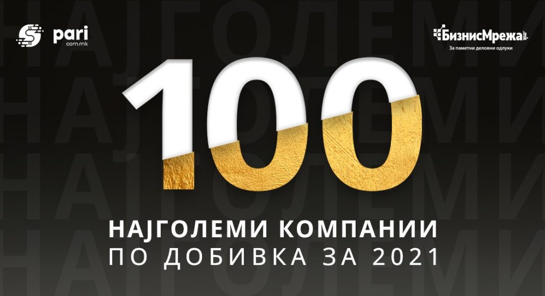 Пари во соработка со платформата за бонитетни информации БизнисМрежа.мк, трета година по ред, Ви ја претставува листата „100 Најголеми“ компании по добивка во Македонија за 2021-та година.