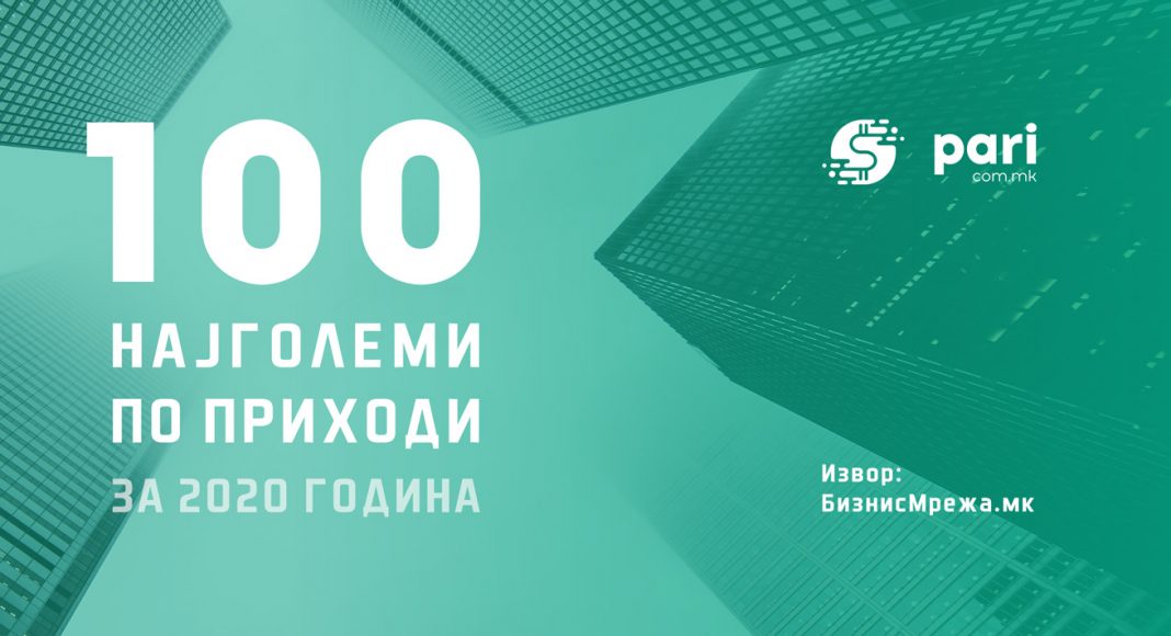 Пари во соработка со платформата за бонитетни информации БизнисМрежа.мк, Ви ја претставува листата „100 Најголеми“ компании по приходи во Македонија за 2020-та година.