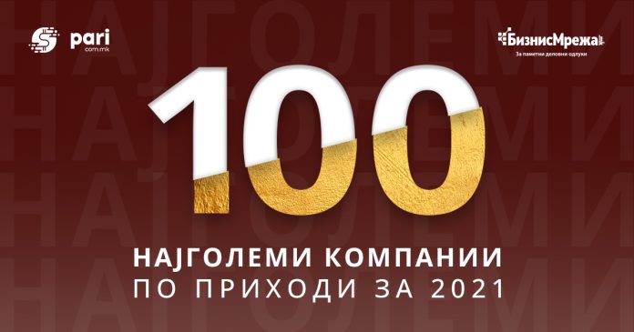 Пари во соработка со платформата за бонитетни информации БизнисМрежа.мк, трета година по ред, Ви ја претставува листата „100 Најголеми“ компании по приходи во Македонија за 2021-та година.