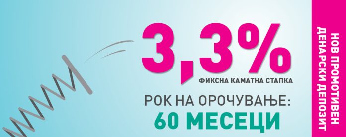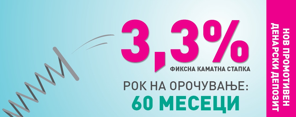 Во месецот на штедењето, во пресрет на Светскиот ден на штедењето Стопанска банка а.д. Битола, промотивно, за своите клиенти го воведува новиот денарски депозит со фиксна каматна стапка 3,3%.