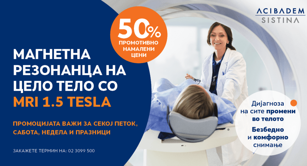 50% ПРОМОТИВНО НАМАЛEНИ ЦЕНИ ВО „АЏИБАДЕМ СИСТИНА“ ЗА MRI-СНИМАЊА