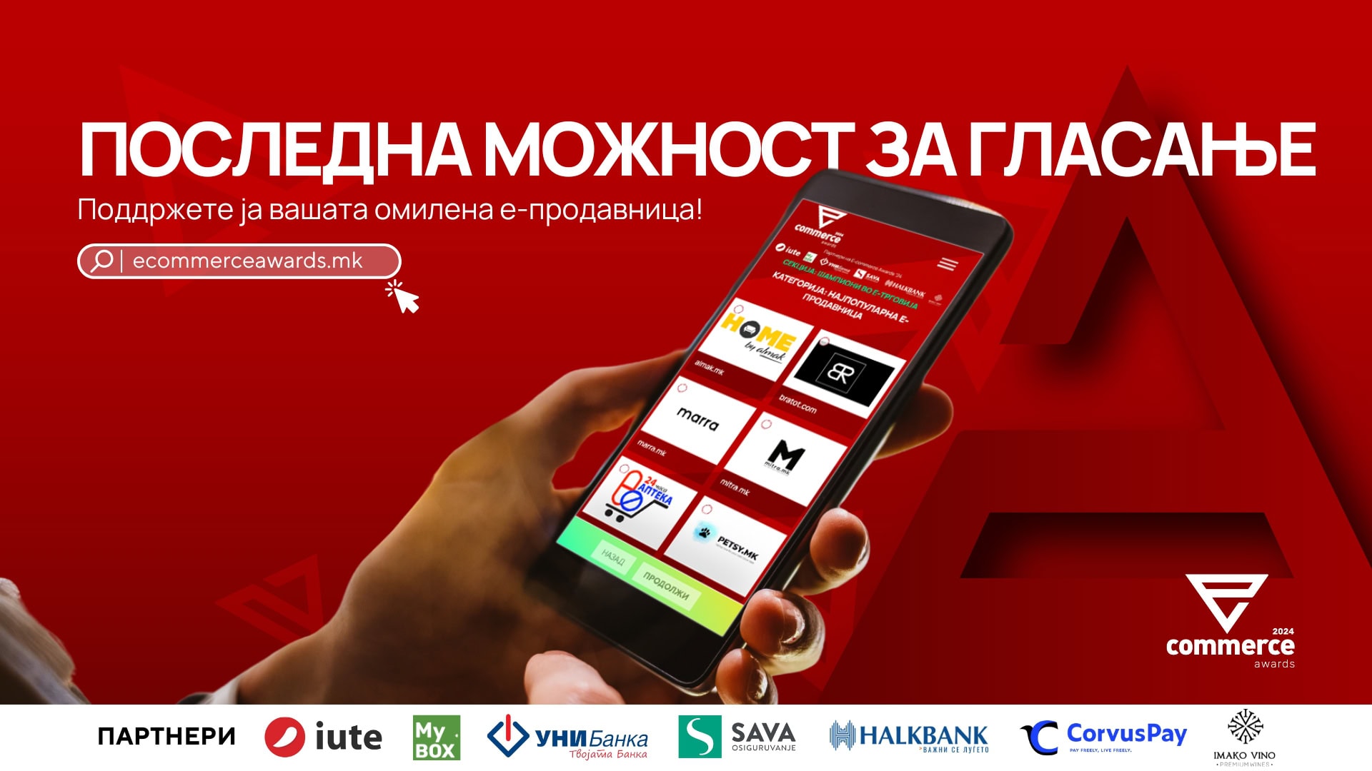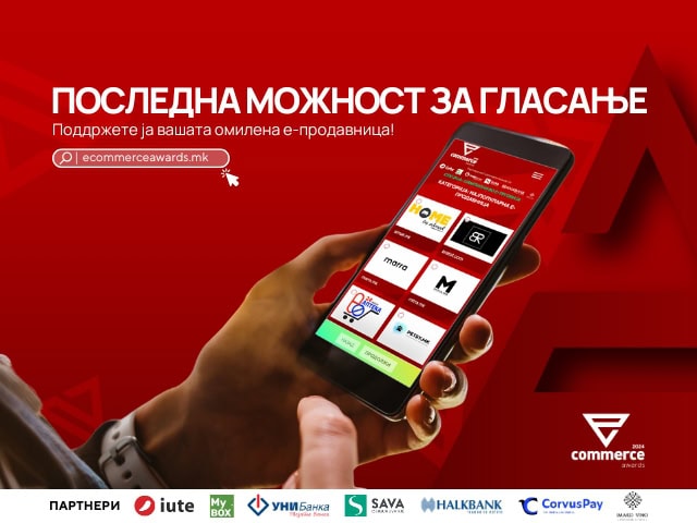 Јавното гласање за „E-commerce Awards 2024“ влегува во својата завршна фаза – денес е последен ден да дадете поддршка на вашата омилена е-продавница. Ова е можност да им оддадете признание на е-трговците кои се издвојуваат со својата посветеност, иновации и врвна услуга во македонската е-трговија.