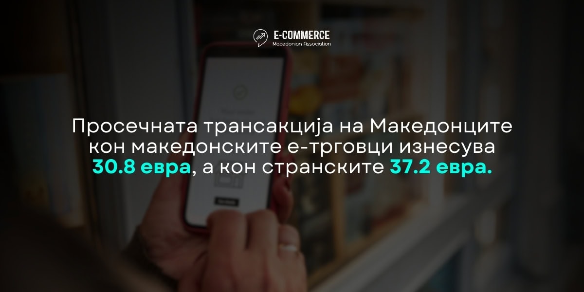 • Просечната трансакција на Македонците кон македонските е-трговци изнесува 30.8 евра додека кон странските е-трговци 37.2