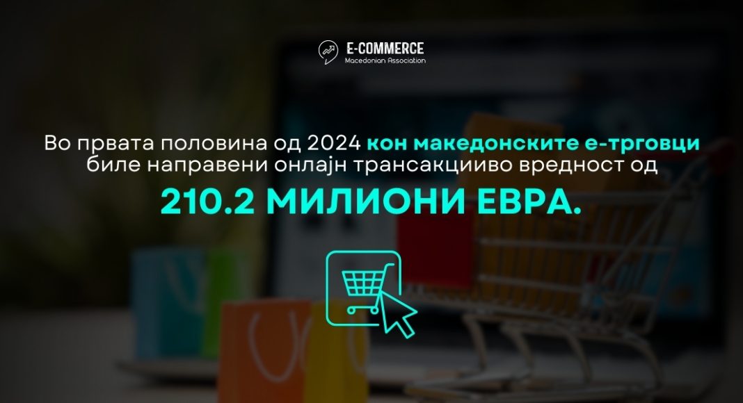Согласно најновите објавени податоци[1] за трансакции на места на продажба за е-трговија (со исклучок на трансакциите со електронски пари) на Народната банка на Република Северна Македонија во првата половина од 2024 година вредноста на вкупните трансакции направени кон интернет продавниците од Македонци дома и во странство, како и од иматели на странски картички изнесува 20,899.8 милиони денари или 339.8 милиони евра. При тоа кон македонските е-трговци биле направени онлајн трансакции во вредност од 210.2 милиони евра од домашни и странски иматели на платежни картички. Тоа преставува учество од 61.8% во вредноста на направените вкупни онлајн трансакции. При тоа од македонски иматели на платежни картичи кон домашните е-трговци направена е вредност од 11,875.6 милиони денари или 193.1 милиони евра, што преставува учество од 56.8%, од странци направена е вредност од 1049.7 милиои денари или 17.1 милиони евра односно учество од 5%. Од друга страна Македонците во странство напавиле онлајн трансакции во вредност од 7974.5 милиони денари или 129.7 милиони евра односно 38.2% од вредноста на вкупните трансакции.