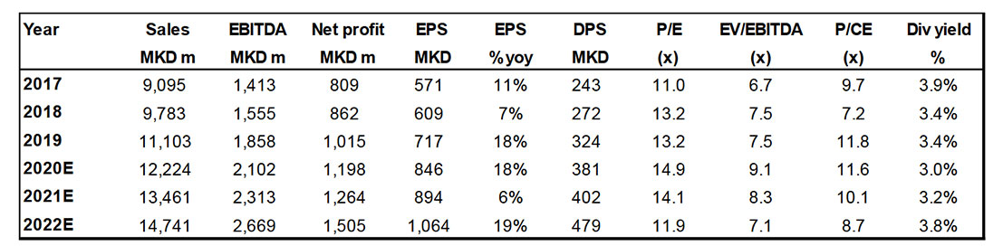 За 2020 година, предвидуваме раст на приходите од 10% и нето добивка од 18%, со што експанзијата на маргината EBITDA ќе се зголеми на 17,2% наспроти 16,7% во 2019 година.