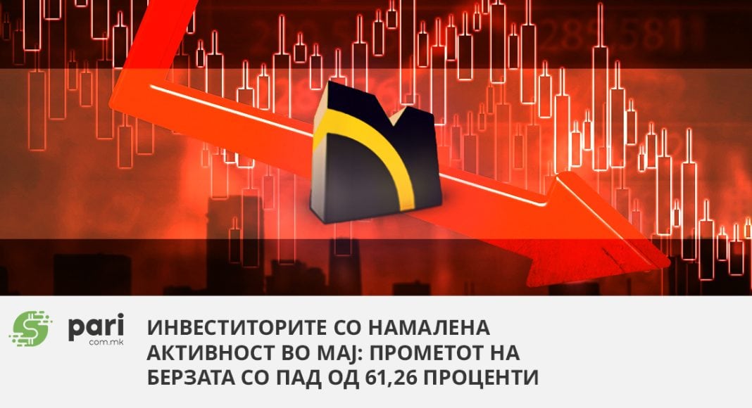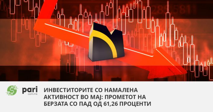Според податоците кои ги објави Македонската берза за периодот од први до 31 мај, вкупниот промет изнесувал 378.559.120 денари, односно 6,2 милиони евра и е намален за ↓61,26% во однос на претходниот месец.