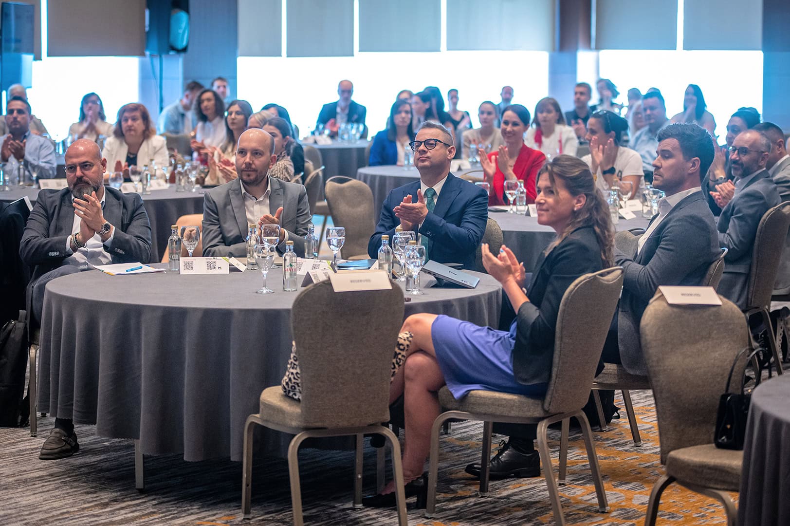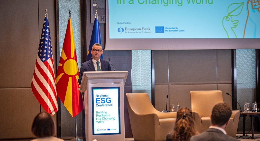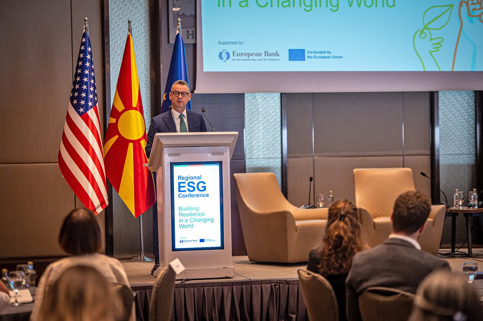 Од објавувањето на првиот ESG-водич за известување од страна на Македонската берза во 2022 година, изработен со поддршка од Европската банка за обнова и развој (ЕБОР), започна видлив напредок во областа на ESG-сообразноста кај компаниите во земјава и регионот. Сепак, како што беше нагласено од страна на говорниците на Конференцијата, процесот на имплементација сè уште е неконзистентен и нецелосен. Учесниците упатија јасен повик за појаснување на регулативната рамка, воспоставување посилни стимулации и обезбедување техничка и институционална поддршка за градење капацитети, со цел да се овозможи поширока, посистемска и поефикасна примена на ESG-стратегиите во сите сектори на економијата. Особено беше потенцирана важноста од усогласување на националните регулативи со стандардите на ЕУ за одржливост, имајќи предвид дека ЕУ е најголем трговски партнер на регионот.