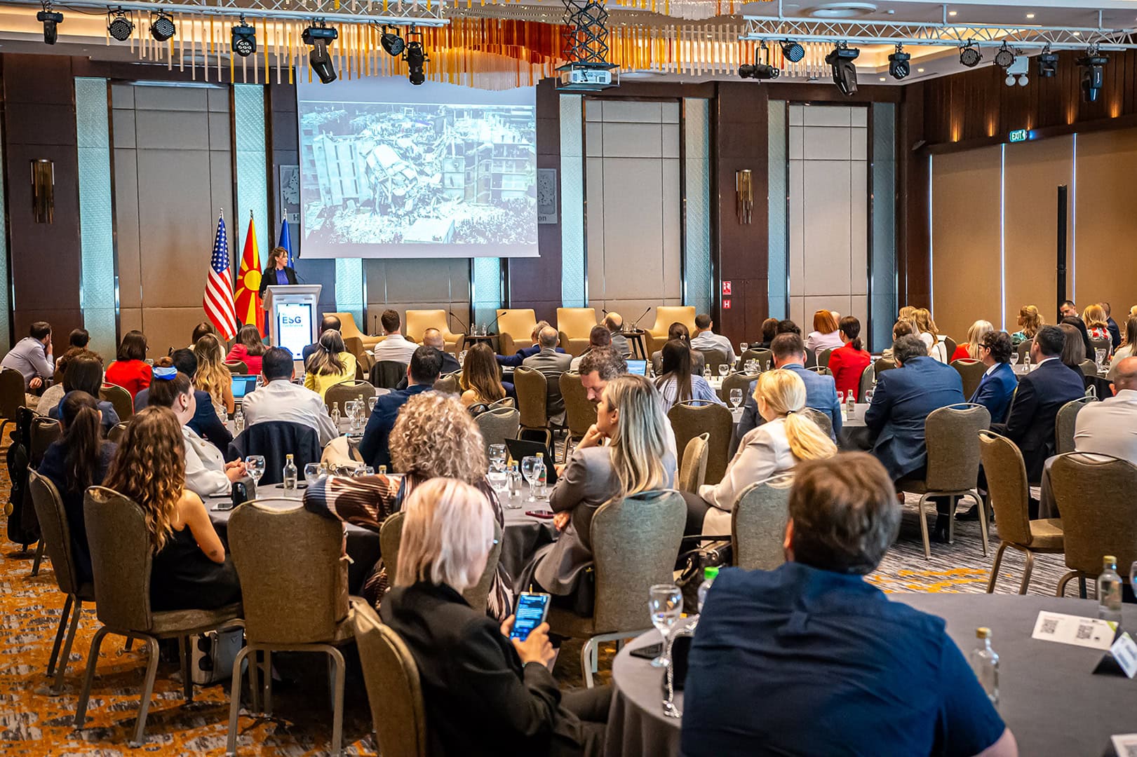 „За компаниите во земјава и регионот примената на ESG-принципите повеќе не е избор – тоа е стратешки чекор кон одржлив раст и поголема конкурентност на глобалниот пазар“, истакна во својот воведен говор Генералниот директор и Претседател на УО на „Алкалоид“, Живко Мукаетов. Во својство на член на Бордот на директори на Американската стопанска комора, Мукаетов потенцираше дека иако општествената одговорност на компаниите (CSR) често се смета за правилната работа што треба да се направи, ESG сè повеќе се препознава како паметен пристап, особено во контекст на глобалните предизвици и стремежот кон долгорочна резилиентност и одржливост на бизнисите.